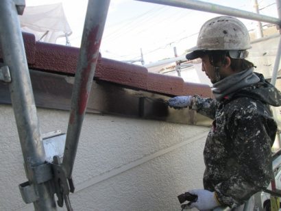 外壁と同様 塗料の密着性を高めるため 屋根も下塗り剤をたっぷりと塗っていきます!