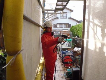 ていねいに高圧洗浄して汚れを落としていきます。