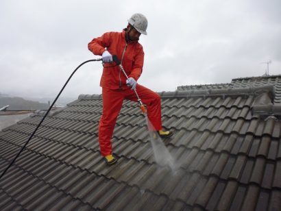 外壁と同様 屋根も高圧洗浄していきます。