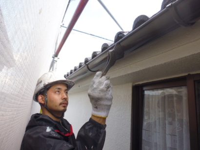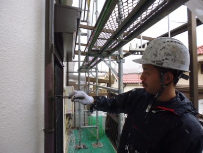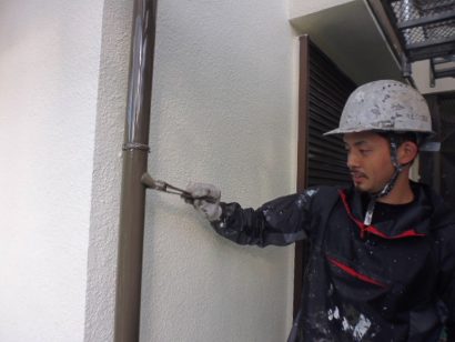 雨といは 下塗り、上塗りと2回塗り重ねます。