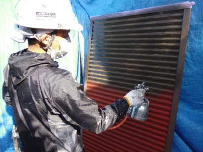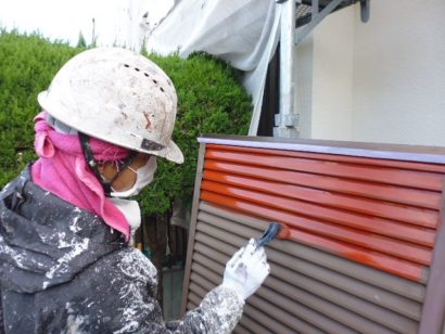 雨戸吹き付け塗装 1回目