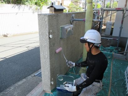 塀も外壁屋根と同様 下塗り、中塗り、上塗りと3回塗り重ねていきます。