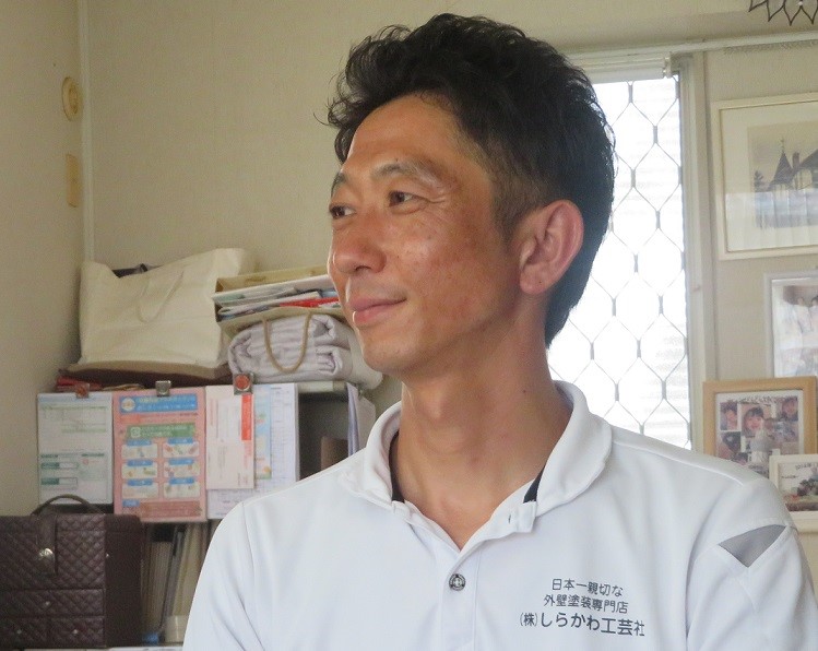 ご主人:きっかけは、「外壁塗装をしないとダメやなあ、どこがいいやろな」と、家内と話をしてて。どこがいいとか悪いとかはわからないんで、とりあえずインターネットで調べようかという事になりました。その時は、「じゃあ、あなた調べて」という事になって。私がずっと調べてて、何件かヒットした中に、しらかわ工芸社さんもあったんです。口コミを見てると、露骨に悪いことを書いてる人もいるんだけど、「一切値引きはしないけど、丁寧な応対と毎朝職人さんが来て、ご挨拶をされる」と書いてありました。僕はどちらかというと、物を買う時は、会社から買うのではなくて、人から買うタイプ。営業さんと会話をして、共感を得ることが、物を買うときの意思決定の根源なんです。だから、「ネットに書いてあるのが本当だったら、こういう業者がいいかもな」という事で、「一回電話してきてもらおう」と電話したんです。それがきっかけですね。「この地区担当の濱上です」という感じで来てくれたんです。